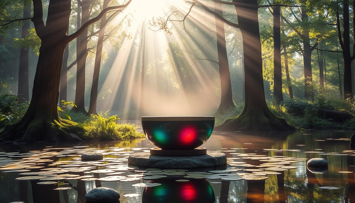Sound therapy is also part of Integrative Medicine. Places like the Mayo Clinic and Johns Hopkins Medicine use it in their healing programs. They mix sound therapy with acupuncture, massage, and nutrition. This way, they help patients with their mind, body, and spirit.
